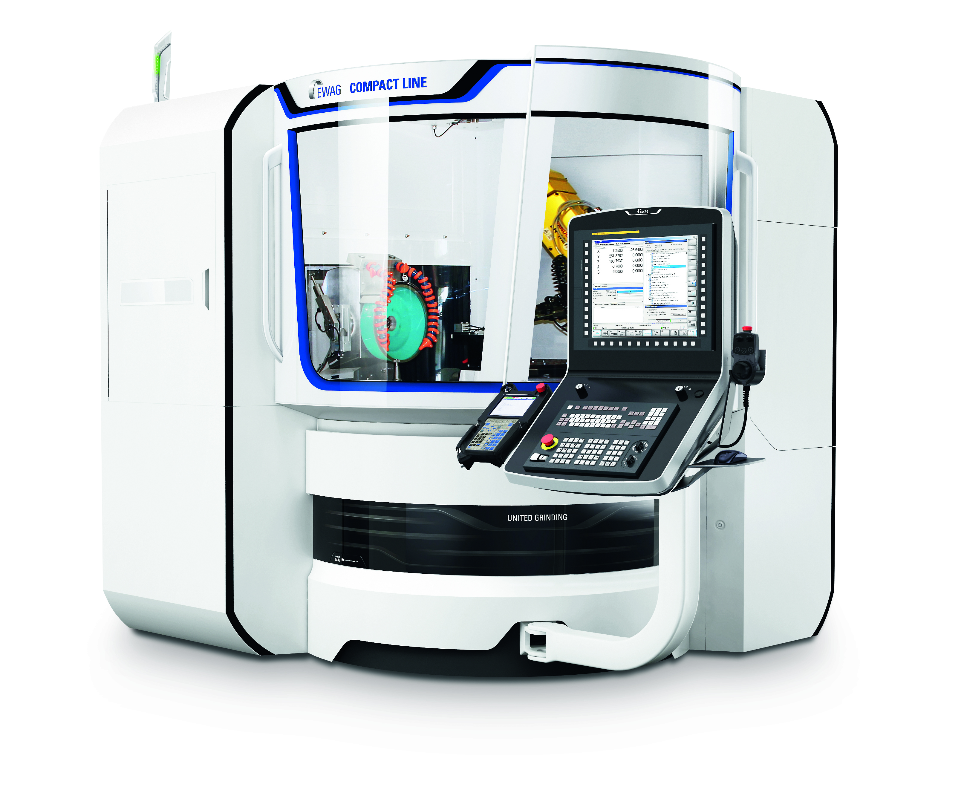 ■Compact Line采用磨削主軸直接驅(qū)動(dòng),線性技術(shù)和數(shù)控五軸聯(lián)動(dòng)等項(xiàng)技術(shù)為各種可轉(zhuǎn)位刀片的磨削加工搭建了平臺(tái)。Compact Line選配Fanuc機(jī)械手,使多班制自動(dòng)化生產(chǎn)得以實(shí)現(xiàn)。減少非生產(chǎn)輔助時(shí)間,縮短磨削節(jié)拍,有效提高了生產(chǎn)率。砂輪修整、砂輪清理、砂輪擠壓成形三 合一系統(tǒng),保證了砂輪處于完好的工作狀態(tài)。Ewag公司已成功開發(fā)了工裝夾具自動(dòng)識(shí)別系統(tǒng),即P&P接口,所有配裝夾具均可自動(dòng)識(shí)別